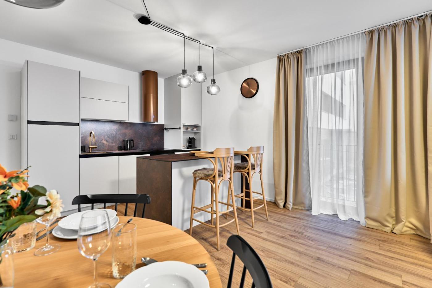 One-Bedroom Apartment. This spacious apartment is comprised of 1 living room, 1 separate bedroom and 1 bathroom with a bath and a hairdryer. In the well-equipped kitchenette, guests will find a stovetop, a refrigerator, a dishwasher and kitchenware. The apartment offers a tea and coffee maker, a seating area, a wardrobe, a sofa, as well as a flat-screen TV. The unit offers 2 beds.