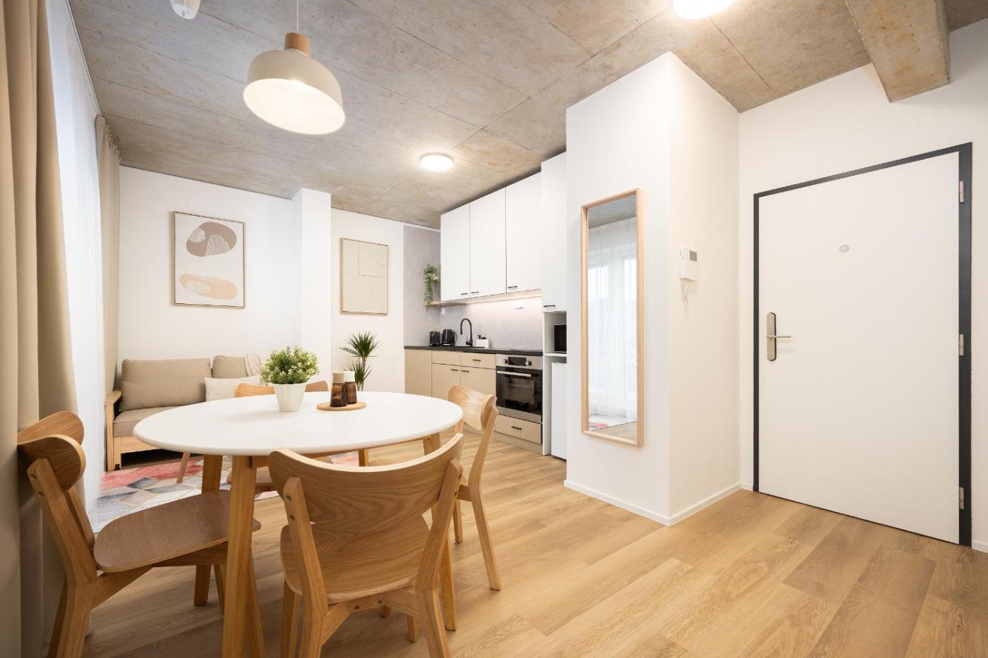 All units come with a flat-screen TV with streaming services, microwave, a coffee machine, a walk-in shower, a hair dryer and a desk. The units include a kettle and a private bathroom, while some rooms also offer a fully equipped kitchen. At the apartment complex, every unit comes with bed linen and towels.
