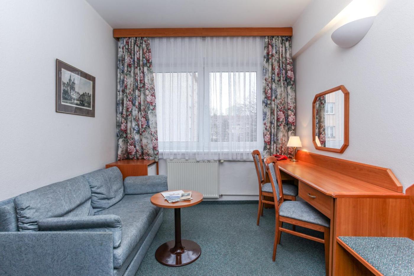 Hotel Astra is quietly located, 500 metres from the Skalka Metro Station, a 12-minute ride from Pragues centre. WiFi is available for free at the reception.